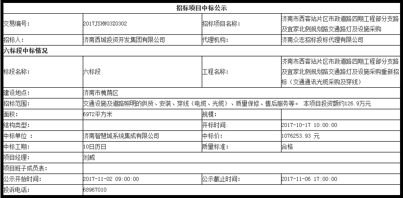 濟(jì)南市西客站片區(qū)市政道路四期工程采購(gòu)中標(biāo)公示