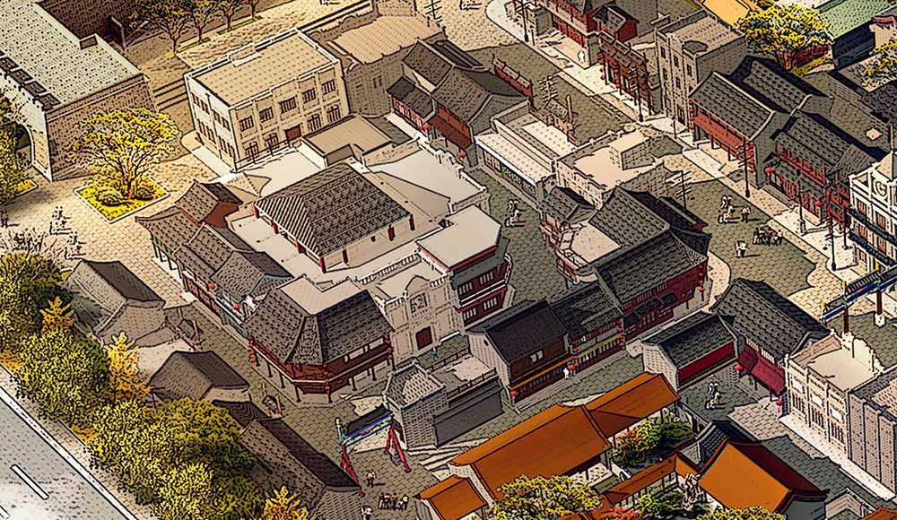 目前,項目現場與規劃效果圖的“吻合度”已經越來越高。占地面積最大、院落層次最復雜的“親王府”已現雛形,城隍廟、城門樓、各類民國建筑輪廓一目了然,不久的將來,這些場景都將會出現在影視作品中。