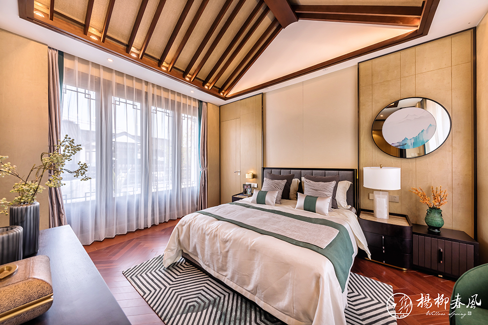 此次對外開放的樣板房一種為新亞洲風(fēng)格,以“禮”、“樂”為創(chuàng)作靈感,巧妙借用了中式園林框景的手法來演繹時尚的氣質(zhì),將室外園林造景與室內(nèi)裝飾相結(jié)合,是古典與現(xiàn)代的一次碰撞。在空間布局上,多處采用中軸對稱的傳統(tǒng)中式手法,大氣之中也展現(xiàn)著家族禮序。南北雙庭院、連接私享露臺的主臥套房、挑空設(shè)計的大面積地下空間,處處彰顯著大家風(fēng)范,在古樸的韻味中體現(xiàn)出一份現(xiàn)代的質(zhì)感。