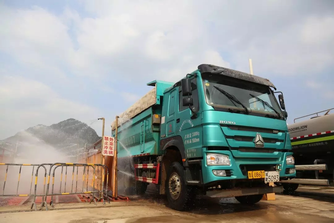 該項(xiàng)目除按照相關(guān)要求安裝自動(dòng)汽車沖洗平臺(tái)、便道兩側(cè)設(shè)置環(huán)場(chǎng)噴淋、出入口安裝24小時(shí)揚(yáng)塵在線監(jiān)測(cè)和視頻監(jiān)控設(shè)備外,還組織了各參建單位技術(shù)力量,創(chuàng)新開發(fā)了不停車沖洗設(shè)施作為輔助標(biāo)準(zhǔn)化洗車平臺(tái),以加強(qiáng)沖洗效果。出入口設(shè)置凈車檢查點(diǎn),對(duì)沖洗不徹底的部位,采用手持高壓水槍進(jìn)行徹底清洗。目前項(xiàng)目的各出入口均已配置2臺(tái)自動(dòng)汽車沖洗平臺(tái),2臺(tái)高壓水槍和不停車沖洗設(shè)施。通過以上措施,實(shí)現(xiàn)施工范圍內(nèi)揚(yáng)塵情況24小時(shí)零死角監(jiān)控,確保外運(yùn)車輛不帶泥上路。