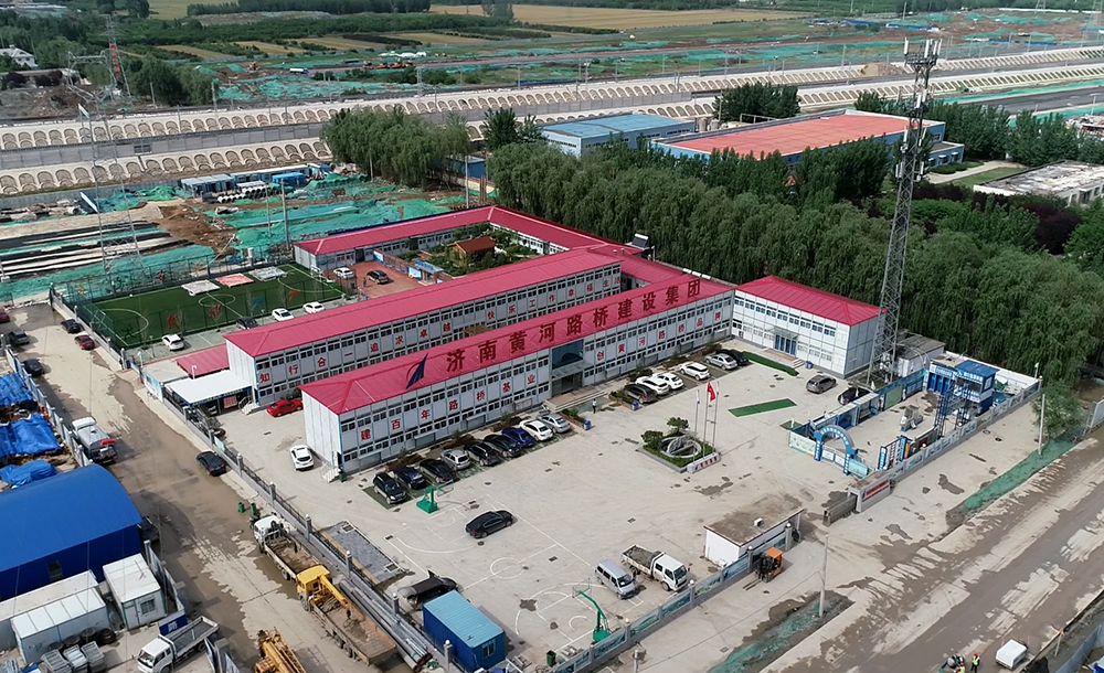 在保質保量打贏攻堅戰的同時,黃河路橋也在綠色施工上下了不少功夫。該項目配備了12臺灑水車,37臺霧炮車和18臺高臺霧炮機,有專門的工作人員進行場內、場外灑水降塵工作及土方作業施工。“灑水車根據天氣情況每天定時灑水,在夏季高溫時期間隔時間不超過1小時。高臺霧炮機則對施工區域進行不間斷噴灑,確保現場無揚塵。”施工人員介紹,公司給項目部配置了6支隊伍專職負責施工現場安全文明施工,78個人每天進行便道清掃、圍擋擦洗圍護、現場整理、裸土覆蓋等工作,確保現場整潔。
