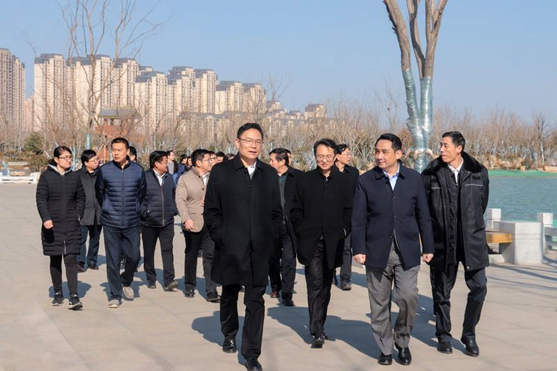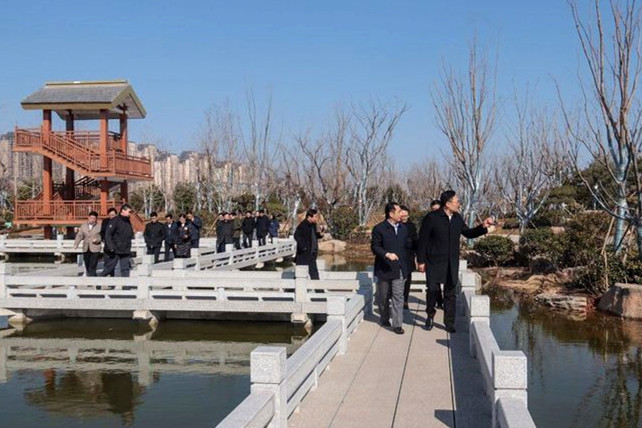 徐群一行首先來(lái)到華山歷史文化生態(tài)濕地公園,聽(tīng)取工作人員介紹了項(xiàng)目的整體規(guī)劃和建設(shè)情況,并實(shí)地察看了公園試驗(yàn)段和園林一期A區(qū),參觀過(guò)程中,徐群副市長(zhǎng)對(duì)效果初顯的900畝山水園林景觀表示了肯定,并對(duì)項(xiàng)目未來(lái)整體效果表示期待。