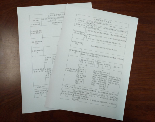 項目部接收質(zhì)量管理交底,并承諾貫徹執(zhí)行。現(xiàn)各項目已按交底要求開展相關(guān)工作,并開始上報質(zhì)量管理工作周報等報表,公司可及時掌握各項目質(zhì)量管理動態(tài),有針對性的調(diào)度各項目部質(zhì)量管理工作,有效提高了公司質(zhì)量管理監(jiān)管的力度。