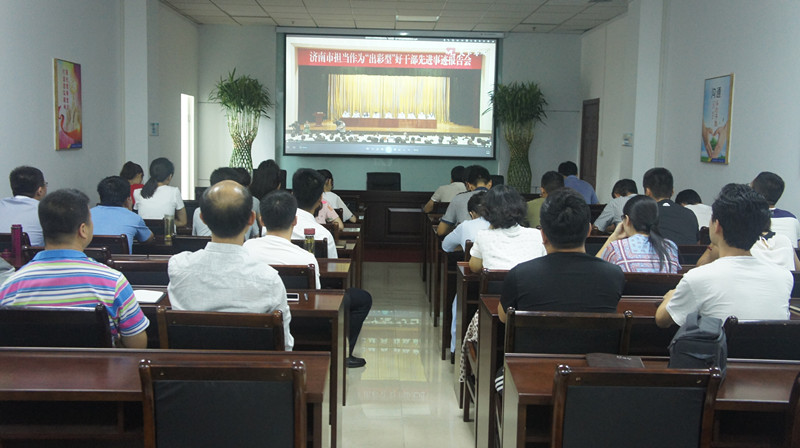 為進一步加強高素質(zhì)干部隊伍建設(shè),充分發(fā)揮全體黨員干部對黨忠誠、苦干實干的模范帶頭作用,努力營造不忘初心、牢記使命,擔(dān)當(dāng)作為、干事創(chuàng)業(yè)的氛圍,8月3日,濟南金衢公路勘察設(shè)計研究有限公司組織全體干部職工四十余人在第一會議室集中觀看《全市擔(dān)當(dāng)作為“出彩型”好干部先進事跡報告》。