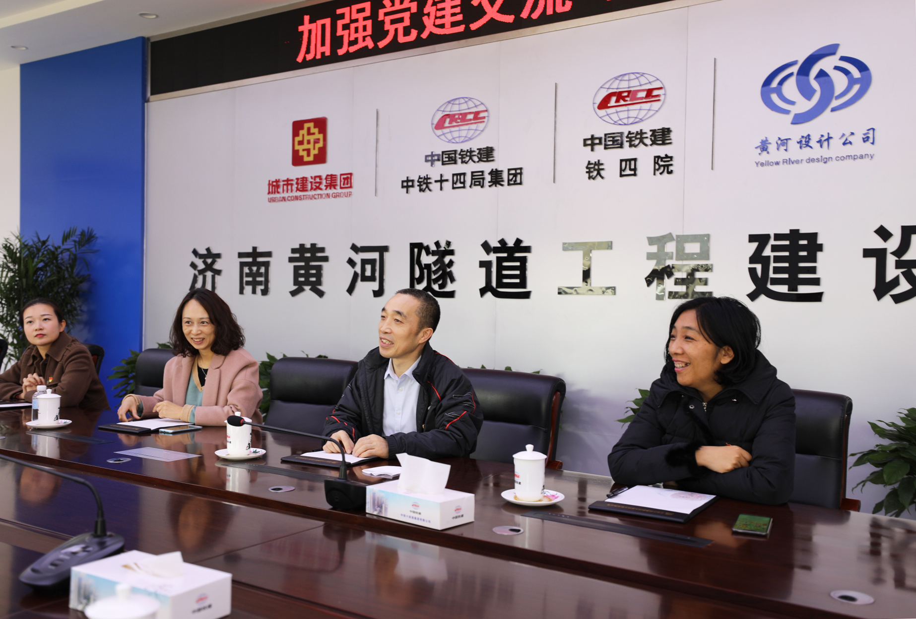 全體人員隨后又來到濟(jì)南黃河隧道項(xiàng)目部。支部與城隧公司黨支部書記、執(zhí)行董事張健及項(xiàng)目工作人員進(jìn)行了座談,雙方著重對(duì)支部目前的工作情況以及今后交流共建形式進(jìn)行了交流探討。張健部長(zhǎng)介紹了穿黃隧道工程項(xiàng)目的進(jìn)展情況,范總對(duì)集團(tuán)目前投融資工作也進(jìn)行簡(jiǎn)要介紹,投融資部的全體人員也參與了交流并表示,在今后的工作中要繼續(xù)積極地配合,做好資金支持與服務(wù)工作。