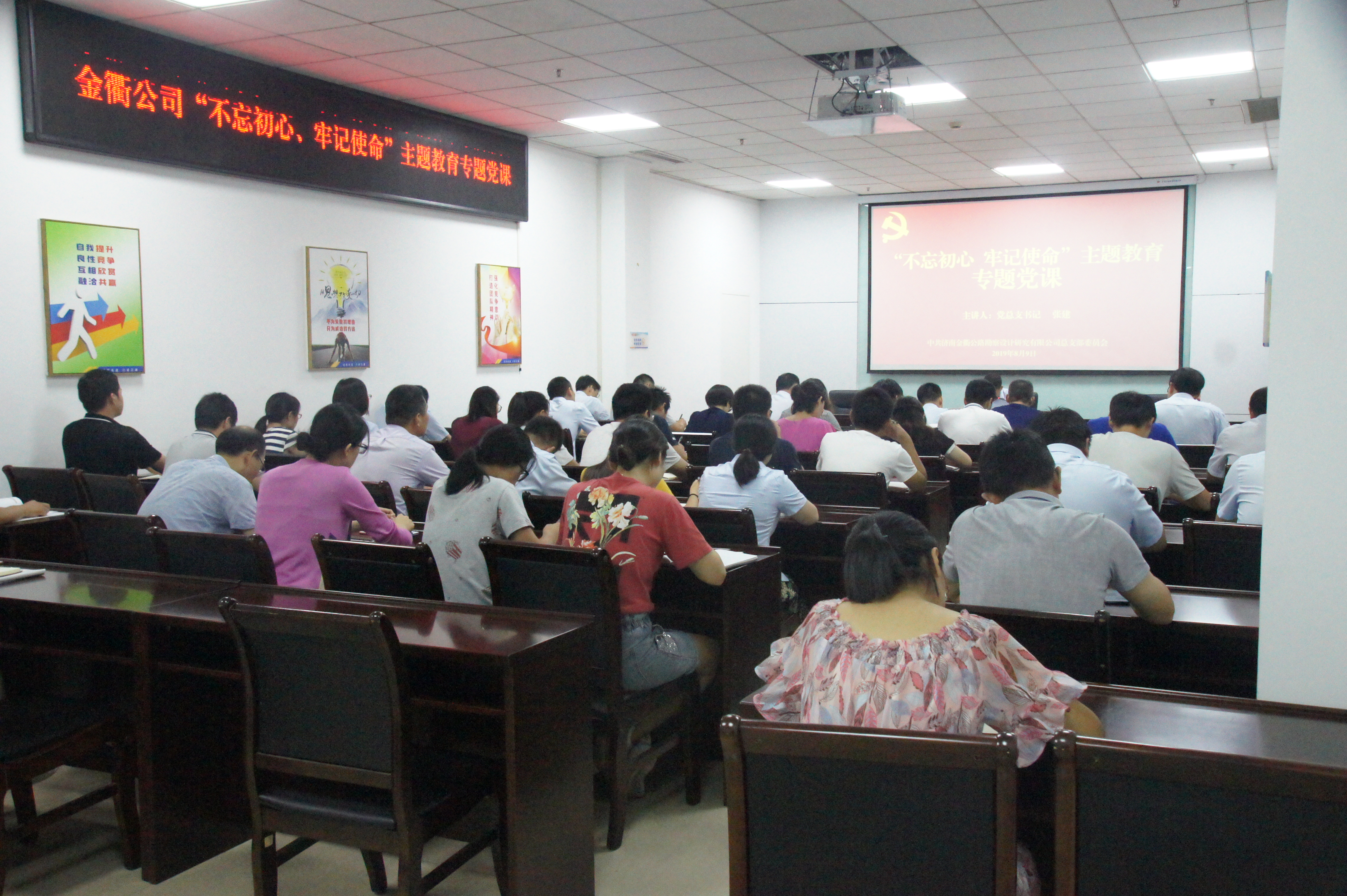 為深入推進“不忘初心 牢記使命”主題教育,不斷加強黨員干部教育管理,8月9日,濟南金衢公司黨支部開展主題教育專題黨課活動,全體黨員、中層以上管理干部、入黨積極分子。公司黨總支書記張建以“新常態(tài)下如何立足崗位以實踐行動詮釋實干、擔當”為題,為全體參加人員上了一堂內(nèi)涵豐富、意義深遠的黨課。