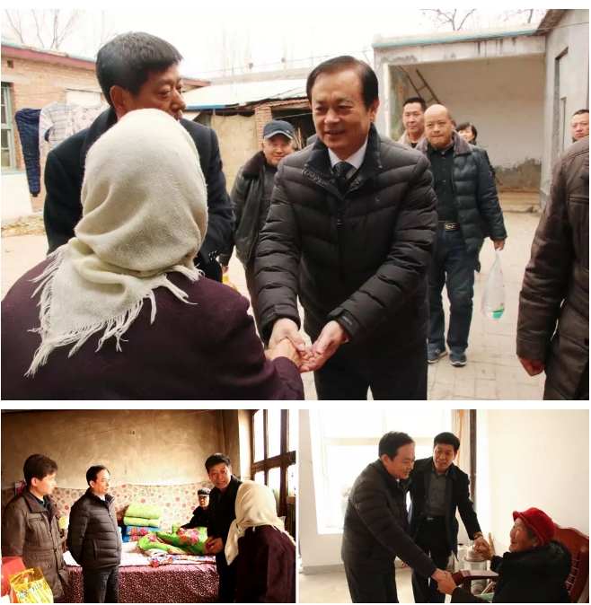 在平陰縣大黃崖村,集團黨委書記、董事長李國祥一行來到貧困戶家中,為他們送去了米面糧油等生活用品,詳細了解他們的生活情況、家庭經濟收入和存在困難等情況,認真聽取他們對脫貧攻堅工作的要求和建議,叮囑第一書記要時刻關注困難群眾的生活情況,及時解決他們的困難和需要,繼續扎實有效做好各項扶貧脫貧工作,苦干實干,堅決打贏脫貧攻堅戰。李國祥與村干部邊走訪邊交流,了解精準扶貧工作的開展情況,感謝村干部對集團駐村“第一書記”王棟棟同志工作的支持和配合,并參觀了集團援建的危房改造工程及村級辦公場所。