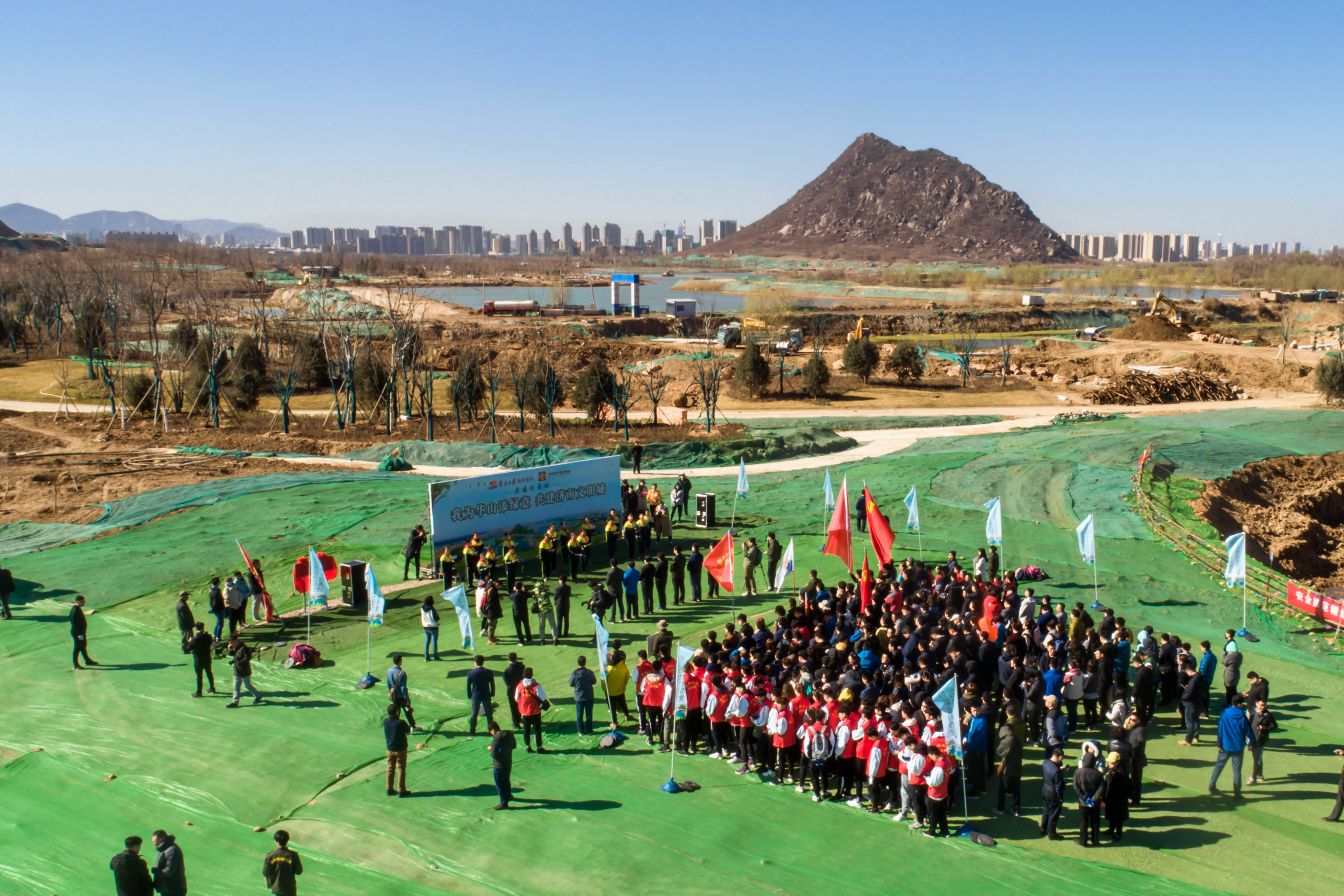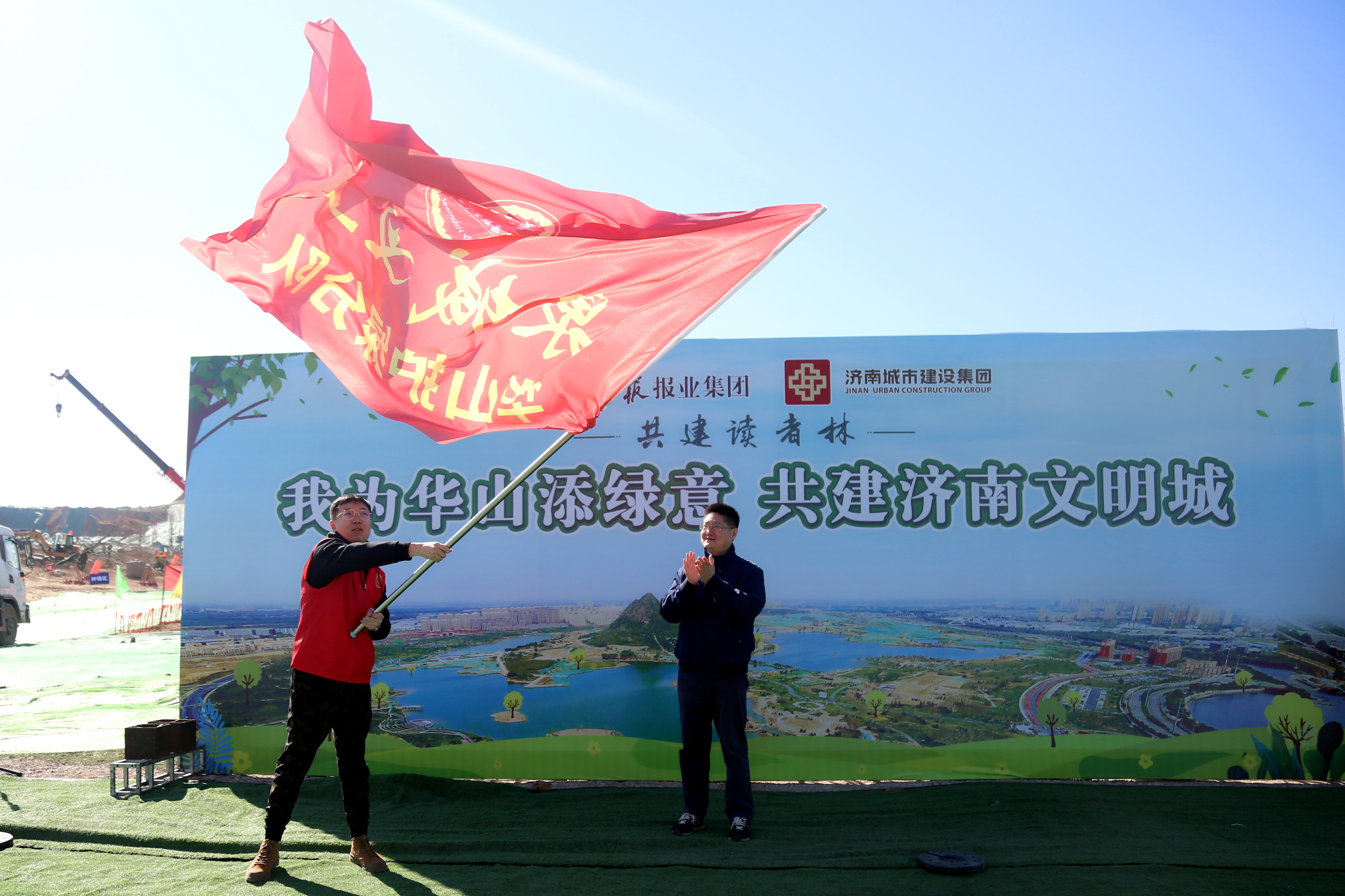 在華山歷史文化濕地公園內,來自雙方單位的干部職工、泉城義工、小記者代表等共計近500人春種華山,并在華山設立“記者志愿林”和“愛心林”。濟南城市建設集團黨委書記、董事長李國祥,濟南日報報業集團董事長、黨委書記、濟南日報社社長馬利共同為“記者志愿林”和“愛心林”揭牌。