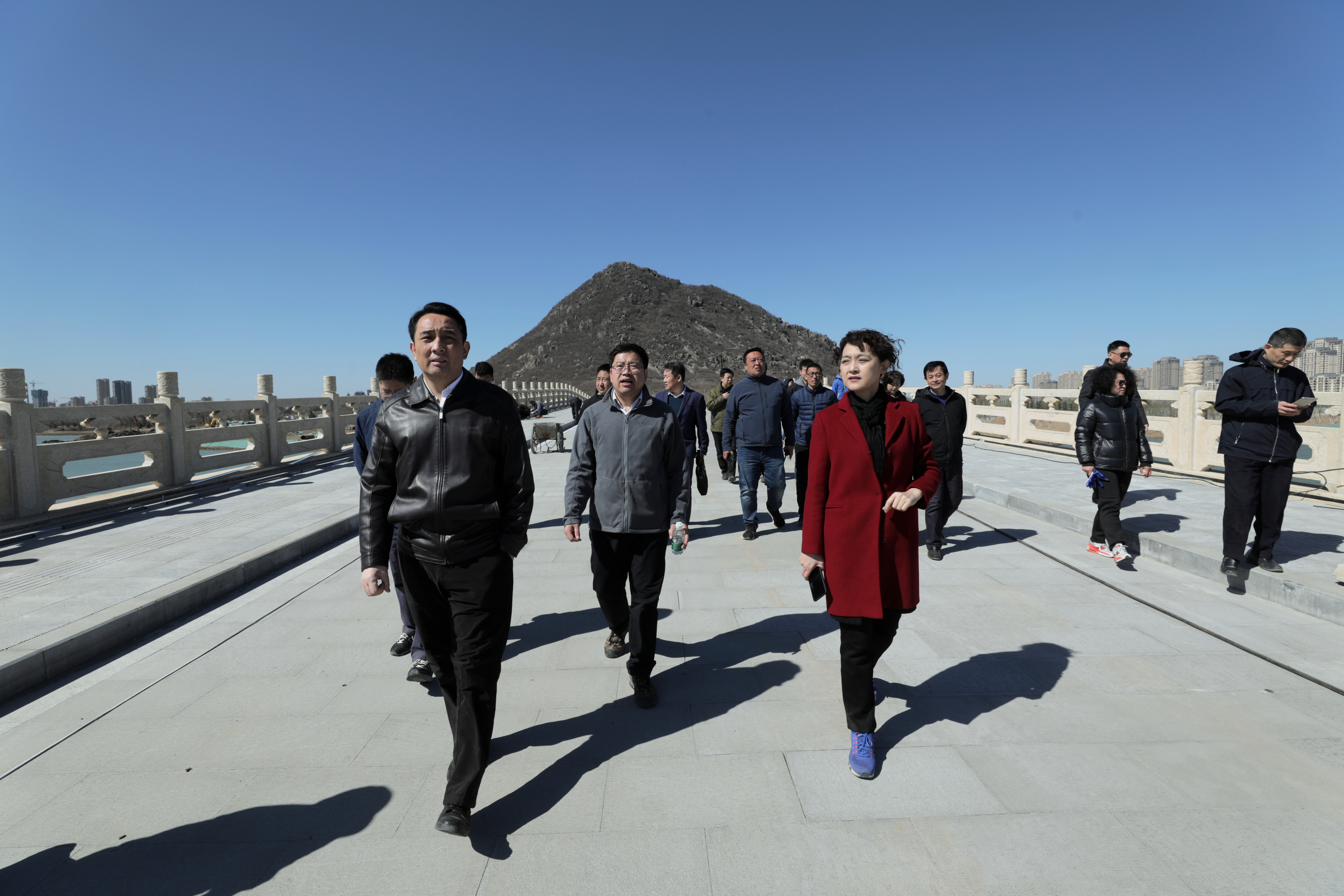 活動結束后,大家登上煙雨橋,實地察看了橋梁和濕地公園二期建設情況。