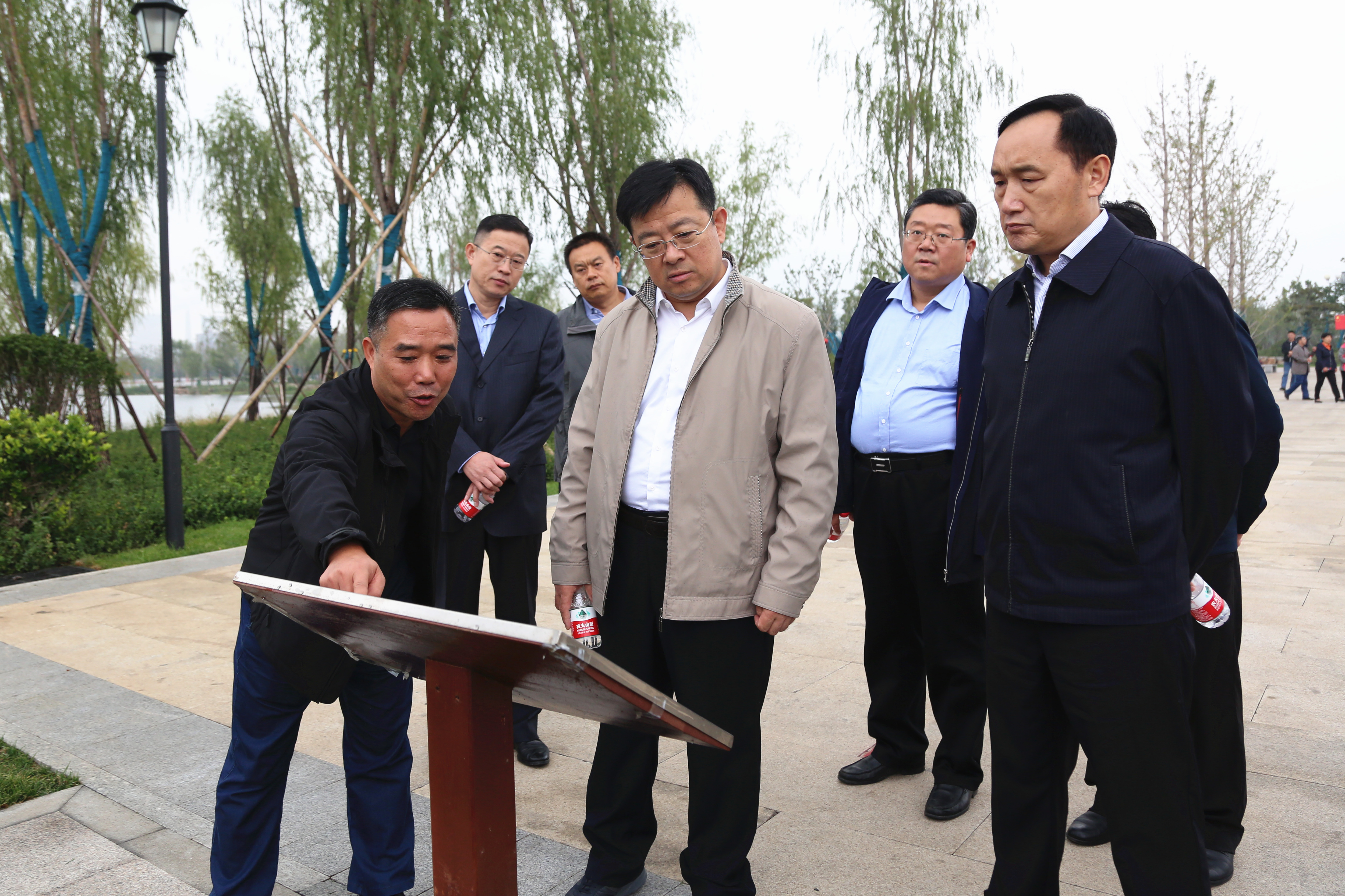 調(diào)研過(guò)程中,程德智實(shí)地察看了華山歷史文化濕地公園的建設(shè)和運(yùn)營(yíng)管理情況,聽(tīng)取了相關(guān)負(fù)責(zé)同志關(guān)于園區(qū)建設(shè)管理、后續(xù)配套提升等方面的工作匯報(bào)。