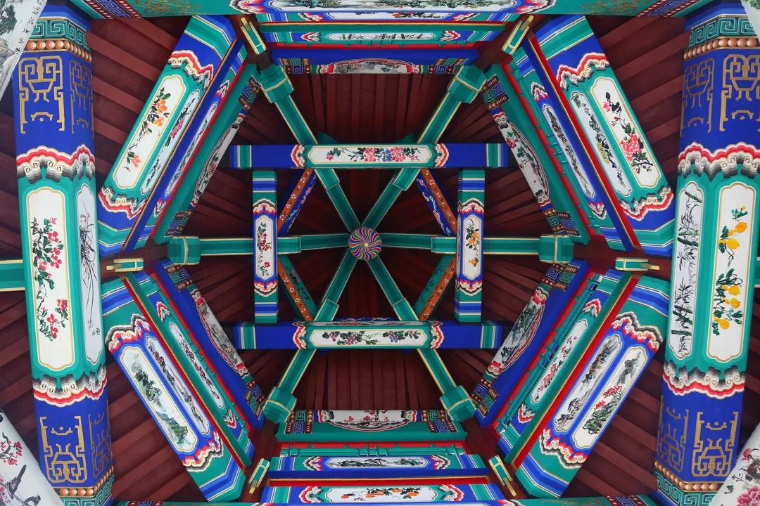 項目中仿古建筑的涂刷油漆部分做地仗都是采用“豬血+桐油”的古法油漆(“地仗”是一種采用“一麻五灰”的古老傳統(tǒng)工藝的施工做法)。仿古地仗油漆成活一般需要基層處理、下竹釘、捉縫灰、通灰、裹布等12道工序。清代彩繪的種類非常豐富,從紋飾的主體框架構(gòu)圖和題材方面分類可分五大類:和璽類、旋子類、蘇式類、海墁類和吉祥草類。“親王府”區(qū)域的建筑彩繪主要采用了三種繪畫形式,王府中軸線上建筑部分采用旋子墨線小點金彩繪,體現(xiàn)為輪廓線均用墨線,花心點金的形式;配房部分采用雅伍墨旋子彩繪,指完全不用金,線條用墨,旋子用藍(lán)、綠、白、黑四色,花瓣不起暈;長廊與園林部分的小型建筑部分采用蘇式彩繪,蘇式彩繪畫面內(nèi)容豐富,自然山水、花鳥魚蟲、各式人物一應(yīng)俱全。彩繪待地仗完成后還需依次為:丈量起譜子、刷生油、磨平、過水布、分中、打普子、瀝大小粉等13道工序。