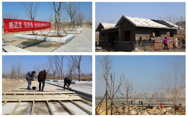 園林二期分為A、B兩個區域,功能性均為園林及濕地景觀,總面積約2257畝(不含覆綠項目),為確保五一達到開園條件,每天二期施工人數能達到600余人,目前正進行園路及廣場鋪裝、公廁及售賣、駁岸、木棧道、挑臺、廊架、水榭等建設施工。“園區植物種類有百余種,櫻花、海棠、玉蘭等樹開花后能形成塊狀景觀帶,將為市民提供一個新的踏春好去處”,項目現場負責人表示。
