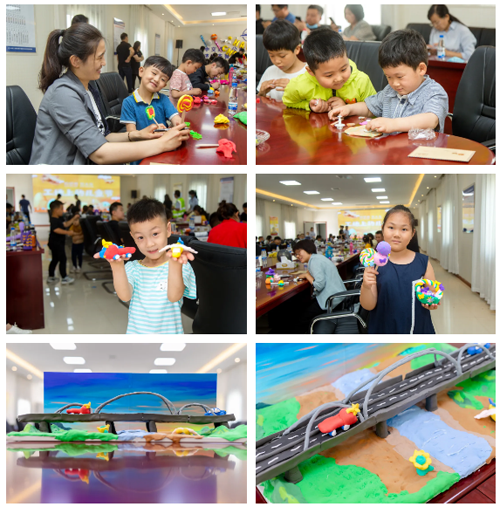 通過工程人員講解與現場參觀,孩子們對齊魯黃河大橋有了一定的認識,親子互動環節中,在三位專業泥塑老師的指導下,小朋友們與家長相互配合,用泥塑筑造他們心中的齊魯黃河大橋。