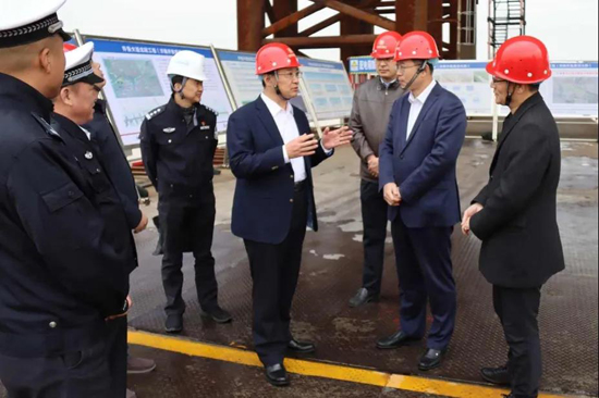 在主橋施工現場,工作組認真聽取了齊魯黃河大橋工程建設等有關情況的匯報,并詳細了解了主橋梁板架設、施工中存在的問題難題和建設工期安排。曹鳳陽表示,此次“萬警進萬企”活動緊緊圍繞市委政法委部署要求,堅持“主動聯系企業、主動服務企業、主動保護企業”原則,及時了解企業需求,響應企業訴求,努力為企業辦實事、做好事、解難事,建立常態化聯系溝通機制,助力企業健康發展、高質量發展。他指出,齊魯黃河大橋的順利建成將極大推動槐蔭和齊河兩地旅游業和經濟社會互動發展,為建設“大強美富通”現代化國際大都市作出新的更大貢獻。