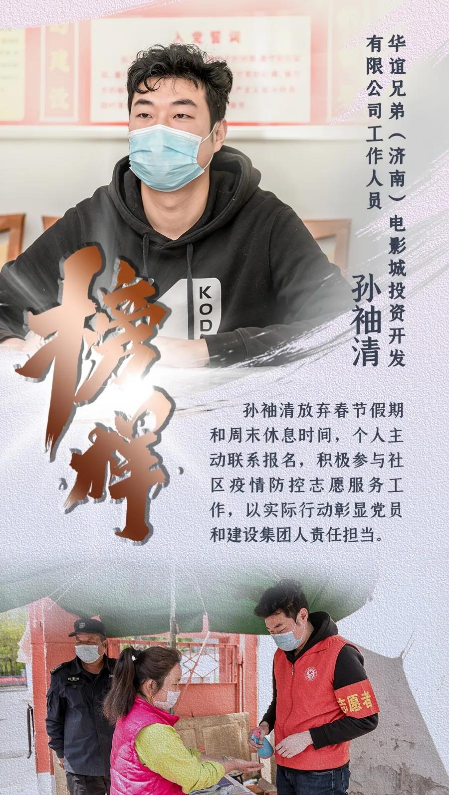 新型冠狀病毒肺炎疫情發(fā)生以來,濟南城市建設集團認真貫徹落實中央、省、市關于疫情防控和復工復產的決策部署,上下一心、眾志成城,全體干部職工恪盡職守、扎根一線,全員全力投入到疫情防控阻擊戰(zhàn)中。期間,涌現(xiàn)出了眾多先進典型和感人故事,用實際行動詮釋了建設集團人的精神風貌和責任擔當。我們在集團宣傳平臺《榜樣》欄目,推出系列人物報道,挖掘宣傳一線典型,提振士氣、凝聚力量,激勵我們繼續(xù)前行,堅決打贏疫情防控的人民戰(zhàn)爭、總體戰(zhàn)、阻擊戰(zhàn)。