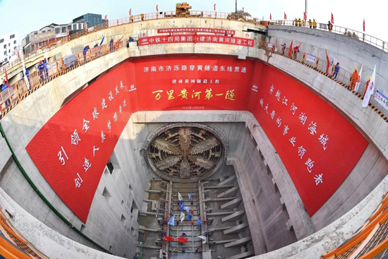 10月30日,隨著“泰山號”盾構機巨大刀盤破土而出,第1254環管片拼裝到位,“萬里黃河第一隧”濟南黃河隧道工程東線隧道率先貫通,標志著我國在建的最大直徑公軌合建盾構隧道取得重大進展,在世界上首次穿越地上“懸河”。該工程由濟南城市建設集團負責投資建設,中鐵十四局集團作為EPC總承包方,聯合中鐵第四勘察設計院集團有限公司、黃河勘測規劃設計有限公司組織施工、設計。