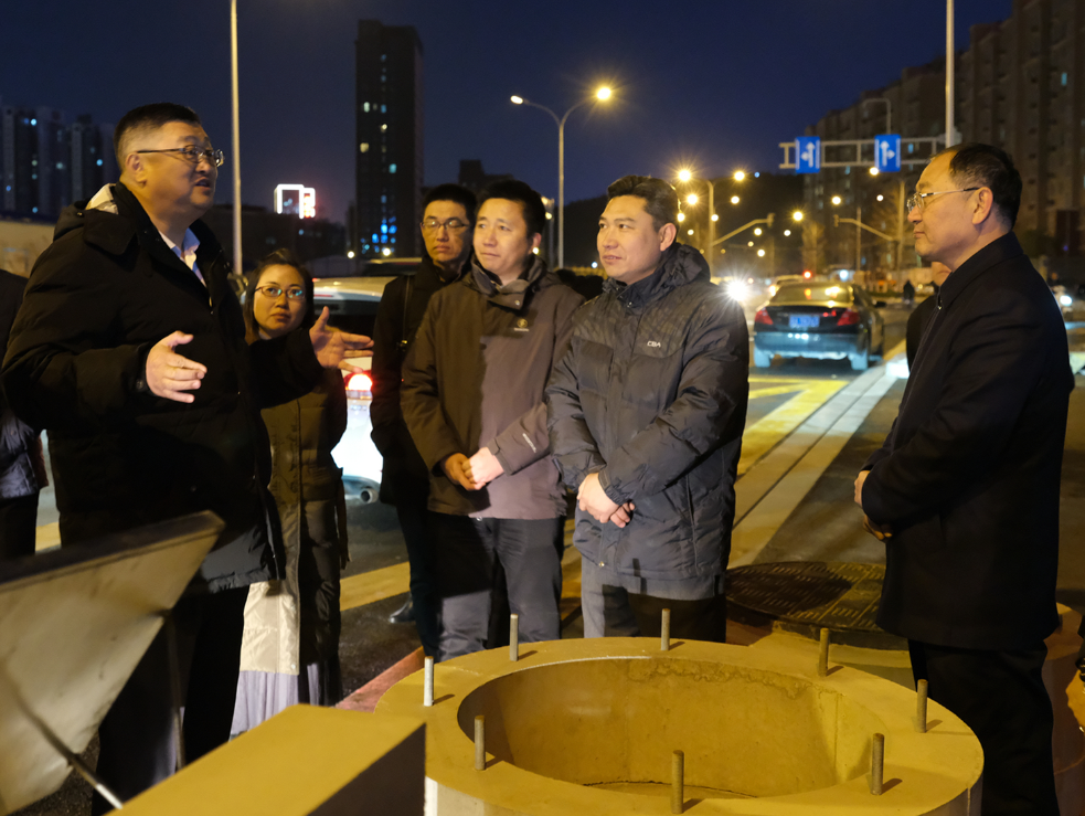 濟(jì)南市歷下區(qū)委書記江山察看黃河路橋禮耕路道路建設(shè)工程裝配式卵型排水槽