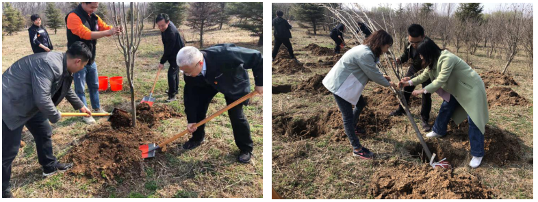 簽約儀式結(jié)束后,全體黨員共同前往植樹地點(diǎn)開展植樹活動。在這個春回大地、欣欣向榮的日子里,大家分工明確、齊心協(xié)力,按照“挖坑、播種、填土、澆水”的程序,將一棵棵充滿生機(jī)與希望的樹苗植入充滿活力的土壤,同時也種下了我們的希望之樹。結(jié)對雙方在一片熱火朝天、其樂融融的氛圍中順利完成了本次植樹活動,為濟(jì)西濕地更增添了一份新綠。