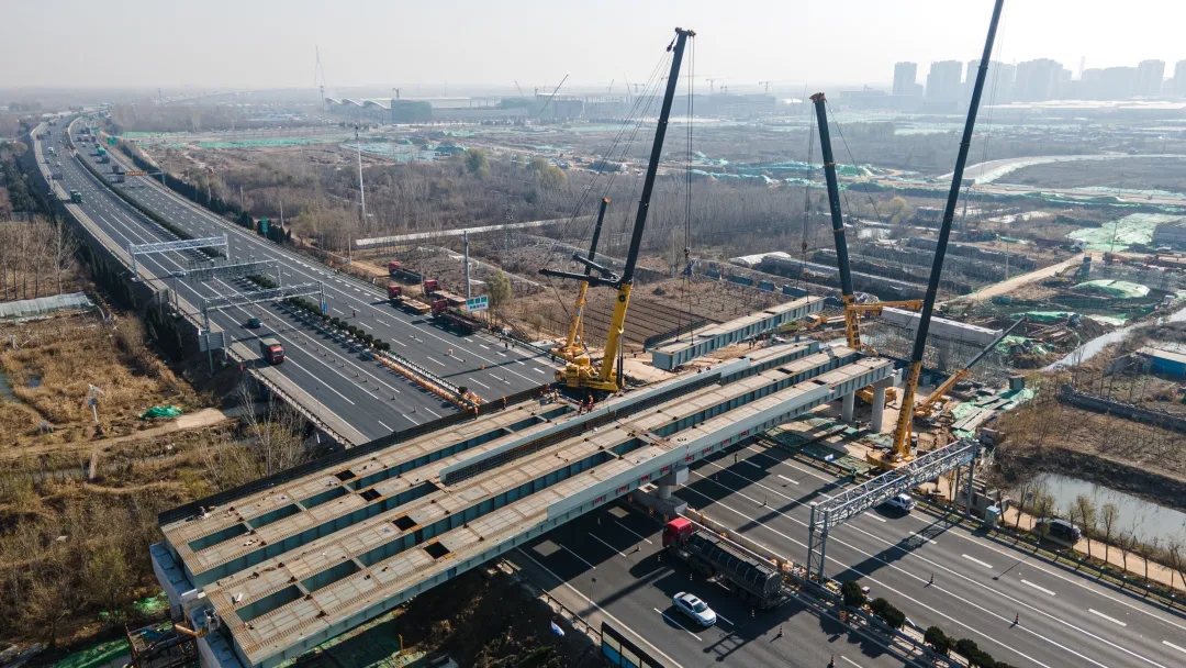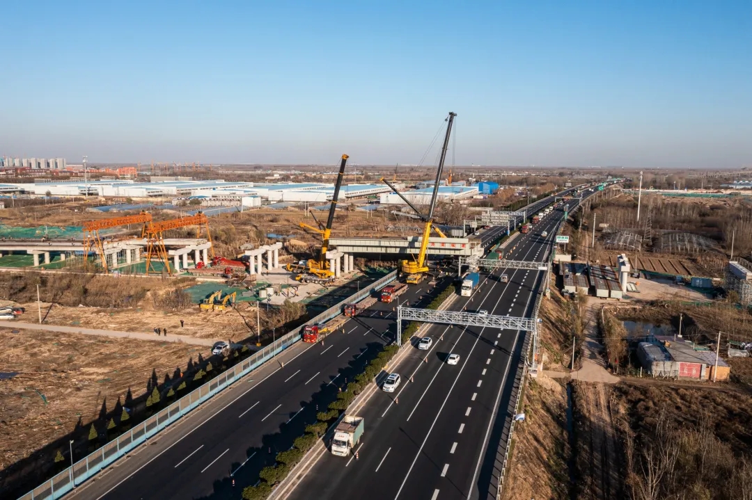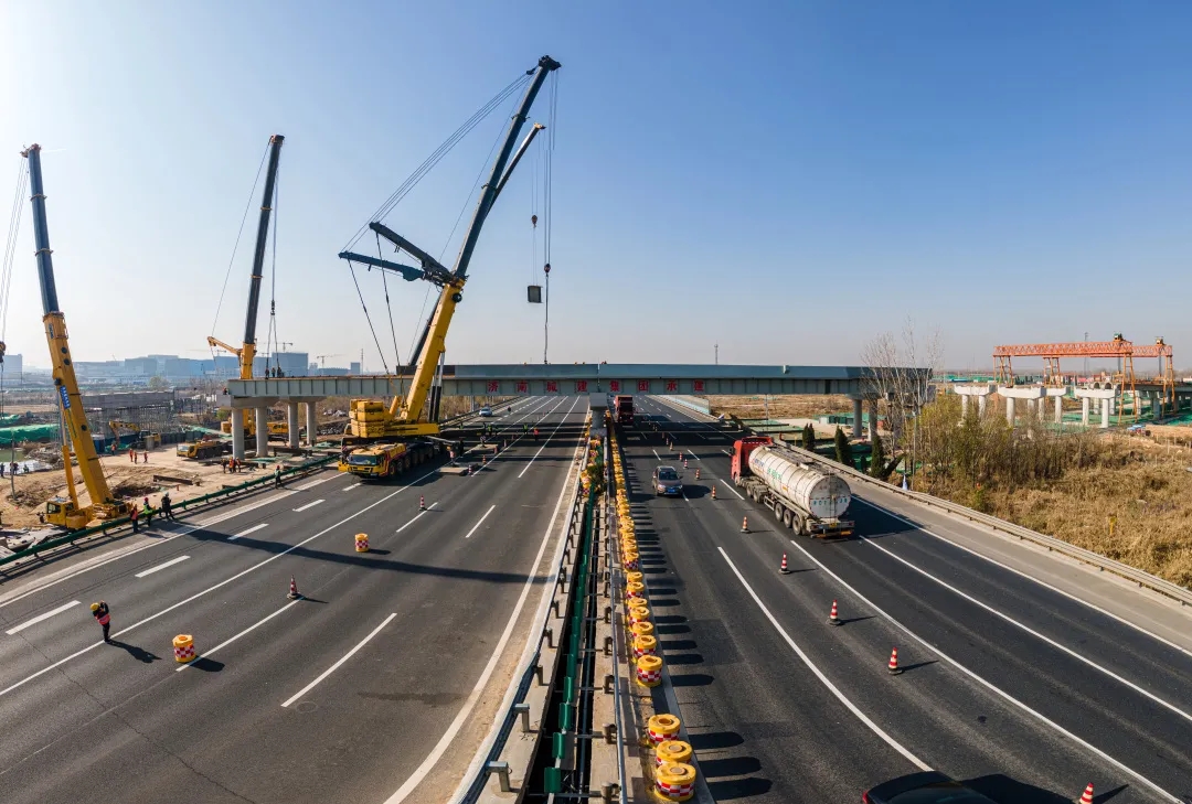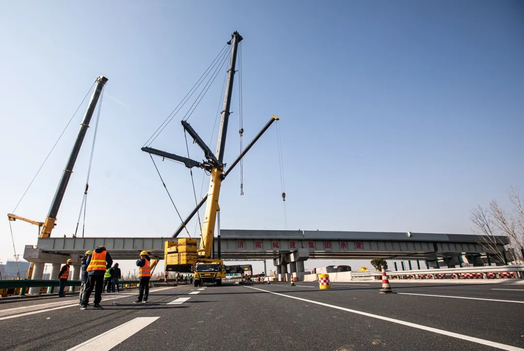 11月25日,歷時8小時施工作業(yè),由建設集團受委托建設,集團所屬濟南城建集團有限公司第四分公司負責施工建設的濟南新舊動能轉換起步區(qū)智慧物流園區(qū)二期工程一標段西環(huán)路跨線橋鋼箱梁吊裝完成,順利跨越青銀高速。