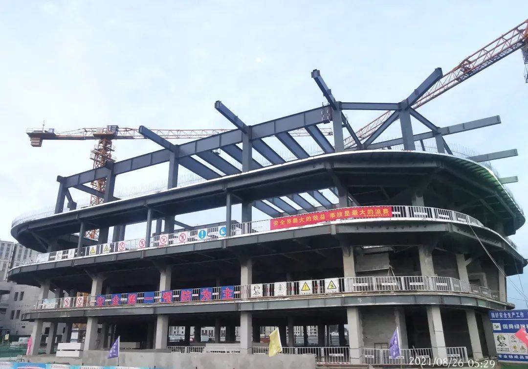 在主體結(jié)構(gòu)施工中,采用鋼構(gòu)框架安裝,施工采用BIM排布鋼構(gòu)安裝順序,鋼構(gòu)組件抵達(dá)施工現(xiàn)場(chǎng)后施工人員按照編號(hào)快速有效拼接。樓板采用樓承板安裝,在免除支模板施工同時(shí)也提高了安全性加快了施工進(jìn)度,實(shí)現(xiàn)了安全經(jīng)濟(jì)環(huán)保的綜合效益。