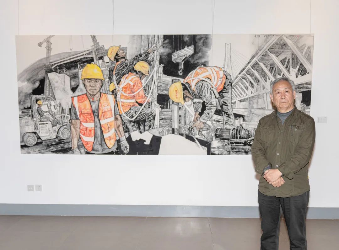 山東省中國畫學會副會長、山東省美協綜合材料繪畫藝委會副會長李兆虬走進濟南黃河大橋改擴建工程建設現場,采風創作了《建設者—濟南黃河公路大橋建設紀實》作品。