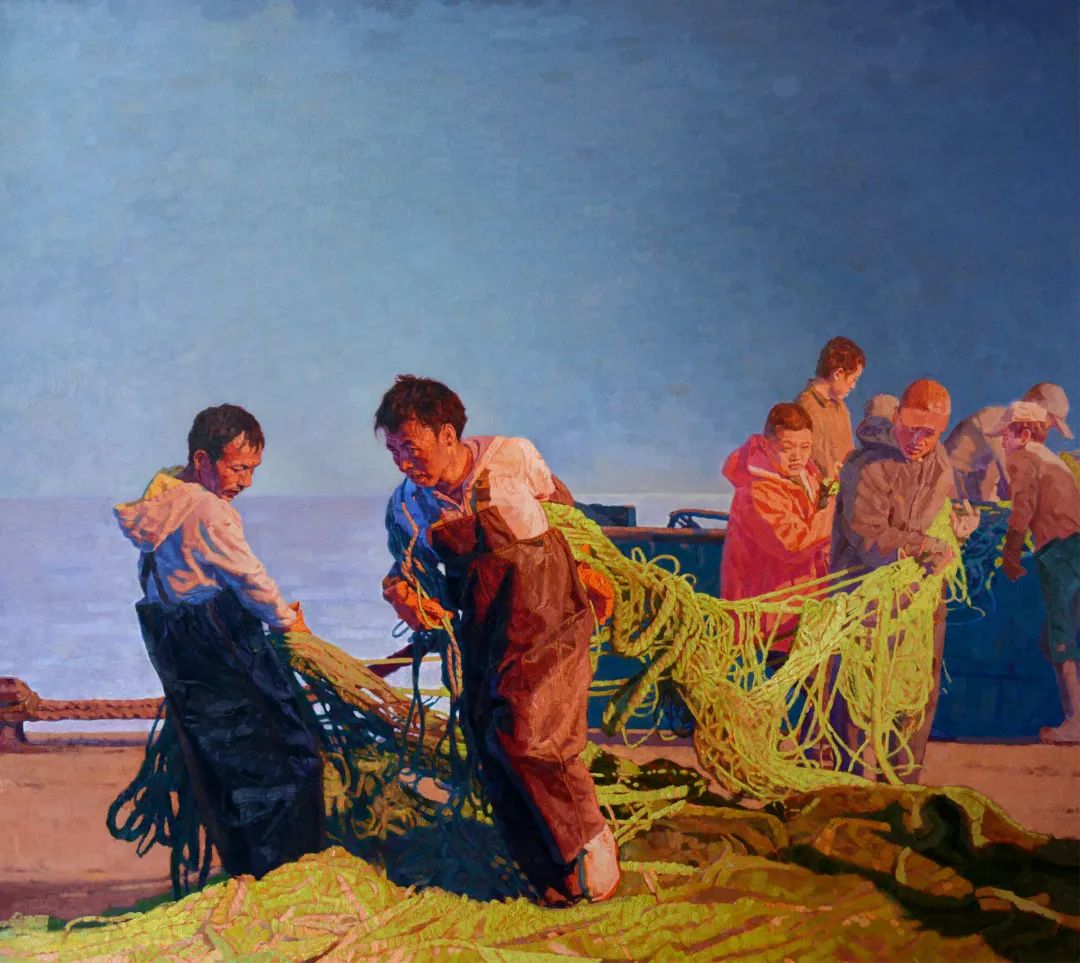 “藝術來源于生活,又高于生活”。吳愛民說:“雖然這幅畫的創作背景不是濟南,但體現的就是日常生活中勞動者的點滴付出”。畫面中應用了暖光源,去表現漁民豐收時的愉悅心情。“勞動是一切幸福的源泉”。“因為各行各業的勞動者默默付出,城市變得更好,人民也體會到自己創造的幸福生活”,吳愛民說道。