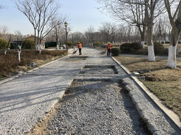 針對市民反映的補(bǔ)修華山湖北岸部分道路的訴求,集團(tuán)高度重視,工程二部相關(guān)工作人員立即到現(xiàn)場實(shí)地勘察,組織編制整修方案,確定將上部松散面層銑刨后,更換為瀝青面層,并于2月28日進(jìn)場實(shí)施。科學(xué)組織,加強(qiáng)調(diào)度,在保護(hù)公園環(huán)境及周邊既有設(shè)施不遭破壞的基礎(chǔ)上,于3月25日施工完成,比預(yù)計(jì)時(shí)間提前一周。