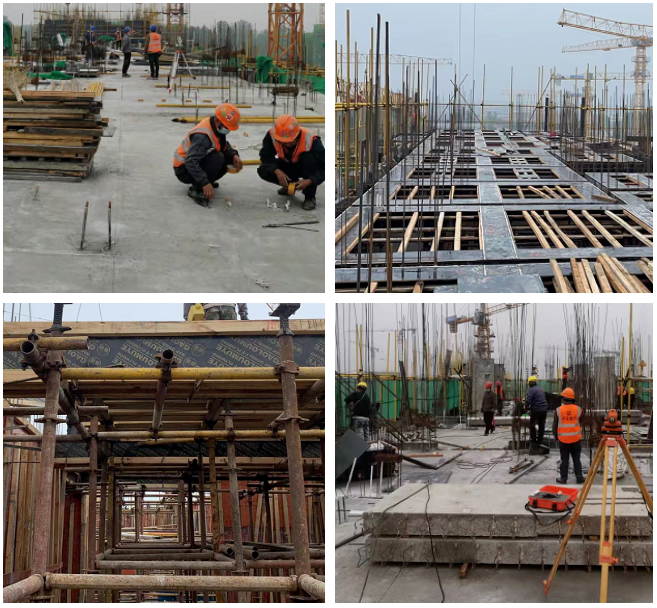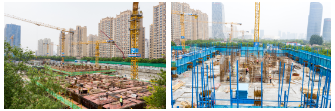 目前,1#樓至14#號樓正進行主體結構施工,地下室準備進行基礎驗收;車庫7#8#樓中間車庫混凝土澆筑、7#樓北側車庫支模架施工、12#14#樓中間車庫頂板鋪設。