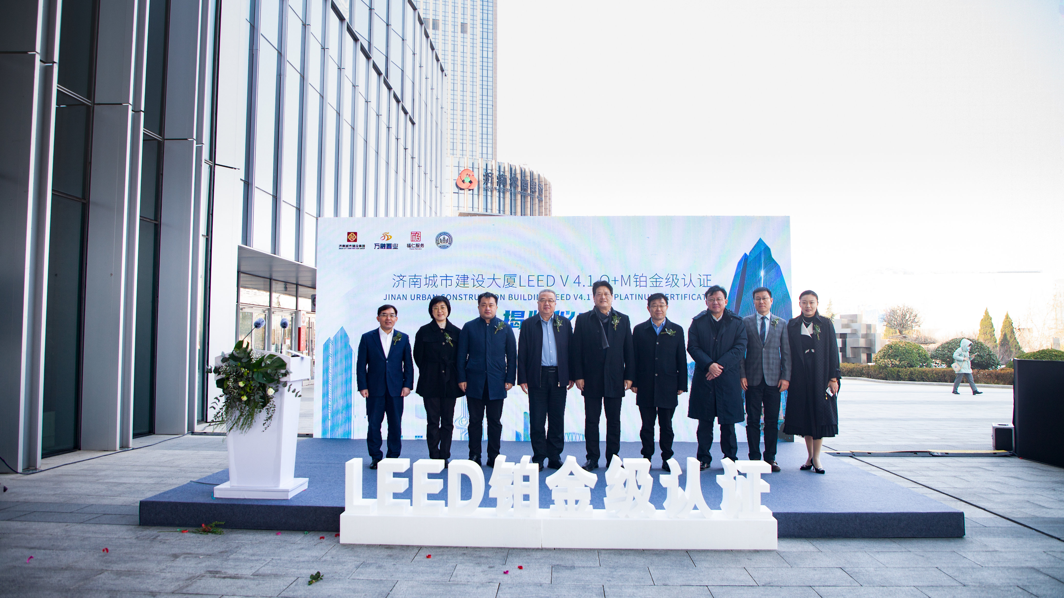 2月16日上午,濟(jì)南城市建設(shè)大廈LEED v 4.1 O+M鉑金級(jí)認(rèn)證揭牌儀式舉行。市城鄉(xiāng)和住房建設(shè)局副局長(zhǎng)張慶華,市住建局綠色建筑節(jié)能與科技處處長(zhǎng)滿意,建設(shè)集團(tuán)咨詢(xún)安玉坤,副總經(jīng)理徐文東,副總經(jīng)理?xiàng)顣詵|,副總經(jīng)理侯濤出席活動(dòng)。萬(wàn)融置業(yè)、福仁服務(wù)相關(guān)負(fù)責(zé)同志參加活動(dòng)。