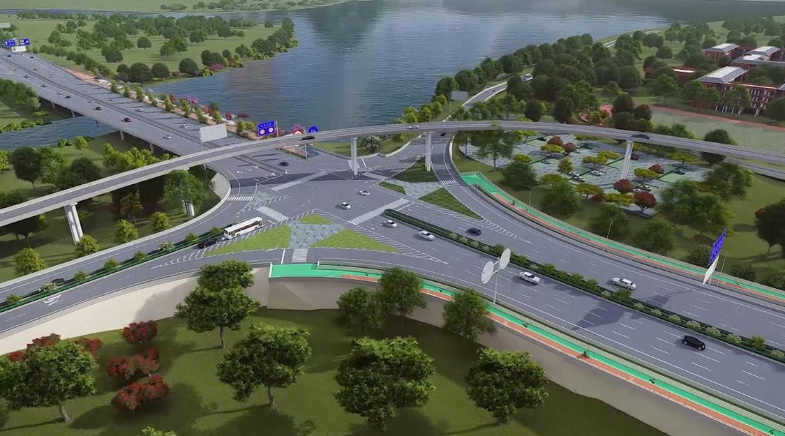 仲宮大橋立交全長691.4米,全橋包含樁基186顆、墩柱156顆、預應力小箱梁270片,是S103全線最大的構筑物。