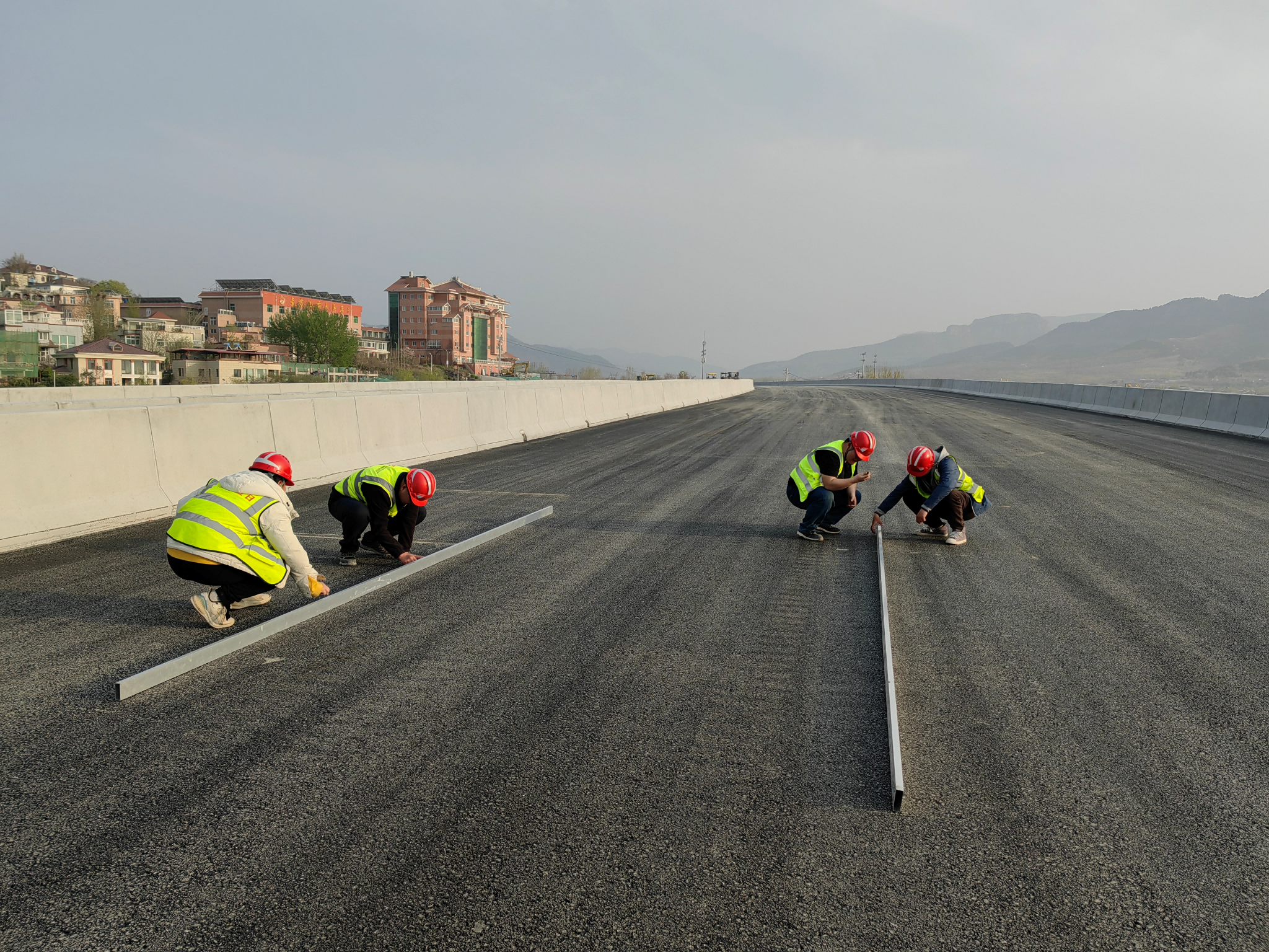 仲宮大橋寬度不一,為確保瀝青上面層攤鋪的質量效果,項目部強化前期籌劃,嚴把材料質量關,對瀝青混合料的拌合工藝、運輸、攤鋪溫度及速度等各個環節做了詳細部署。施工中做好各環節全程監控,嚴格控制瀝青、礦料加熱時間、溫度、混合料拌和時間、均勻性、厚度等技術指標。借助機械指揮官系統,實時監測攤鋪機、壓路機的行進速度。復壓完成后立即組織現場技術人員使用6m直尺對上面層平整度進行初步檢測,對輪跡明顯的位置安排壓路機再次進行斜壓處理,以確保上面層平整度符合預設目標,真正做到品質“看得見”。經現場檢測,上面層平整度為0.6,實體檢測項目完全達到優良目標。
