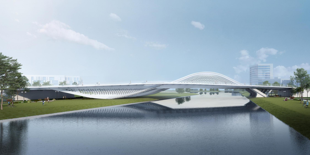橫一路大寺河橋由世界著名橋梁設(shè)計(jì)師Marc MIMRAM先生主設(shè)計(jì),由建設(shè)集團(tuán)所屬濟(jì)南金曰公路工程有限公司承建。橋梁全長168.1m,采用三跨梁拱組合鋼結(jié)構(gòu),一跨(93.5m)跨越大寺河主河道,橋梁橋面總寬35.9~42.6m,橋梁鋼結(jié)構(gòu)總鋼材用量4300余噸。