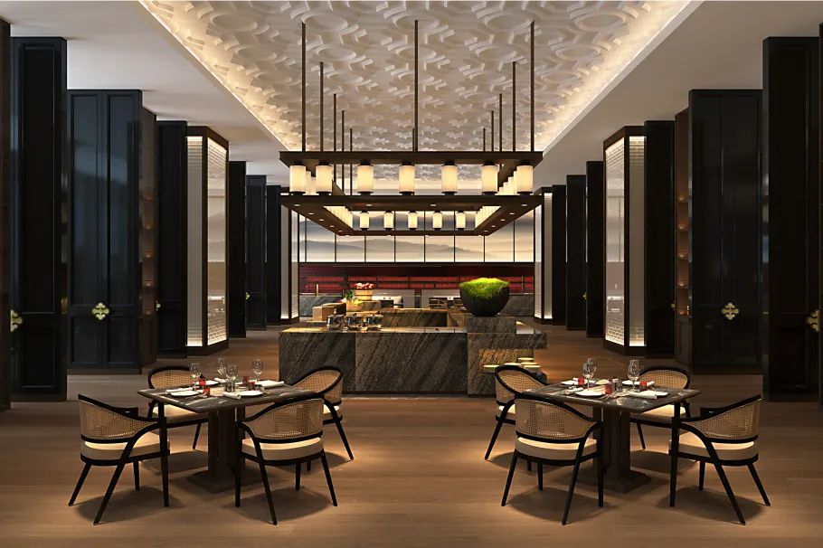 項(xiàng)目將宋代雅致美學(xué)融入酒店裝飾設(shè)計(jì),分別賦予前廳、餐飲區(qū)、宴會(huì)廳以“云起”“云深”“云上”“云歸”之意,復(fù)刻世人追慕的宋人閑雅生活。