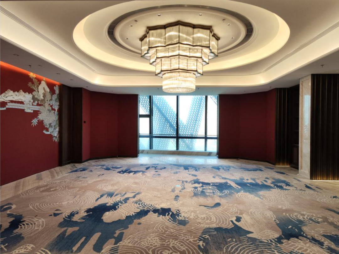 酒店大堂和過(guò)廳吊頂為異型鋁型材格柵吊頂,大宴會(huì)廳吊頂為多層鋁方通交錯(cuò)布置造型,項(xiàng)目團(tuán)隊(duì)使用BIM建模技術(shù),優(yōu)化施工工藝提高了施工效率,僅此一項(xiàng)節(jié)省工期30天,項(xiàng)目團(tuán)隊(duì)群策群力科學(xué)組織各項(xiàng)施工,7天完成地毯鋪裝18000平方米,10天完成墻面硬包安裝20000平方米,40天完成大理石鋪貼和干掛施工3.4萬(wàn)平方米,項(xiàng)目如期通過(guò)驗(yàn)收,為酒店開業(yè)奠定堅(jiān)實(shí)的基礎(chǔ)。