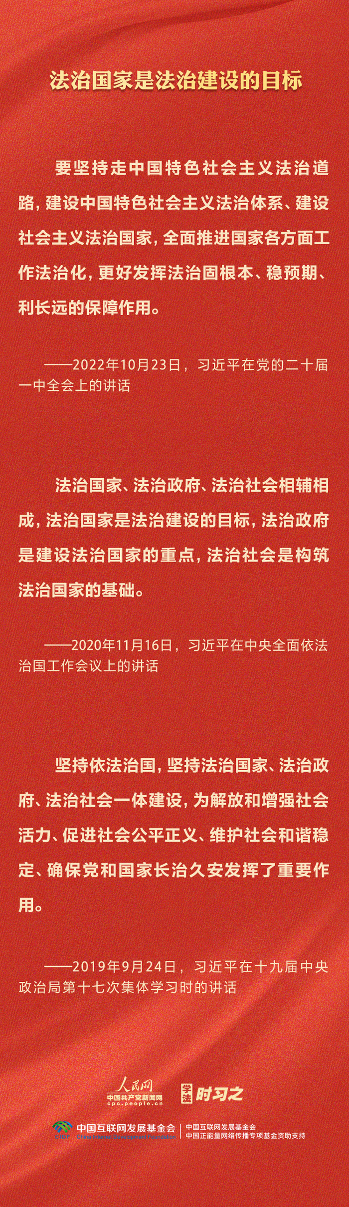 今年是貫徹落實黨的二十大精神的開局之年。中共中央政治局決定從今年4月開始,在全黨自上而下開展學習貫徹習近平新時代中國特色社會主義思想主題教育。習近平法治思想是習近平新時代中國特色社會主義思想的重要組成部分,人民網·中國共產黨新聞網推出學法時習之·學習習近平法治思想系列策劃,本篇聚焦“堅持依法治國、依法執政、依法行政共同推進,法治國家、法治政府、法治社會一體建設”。