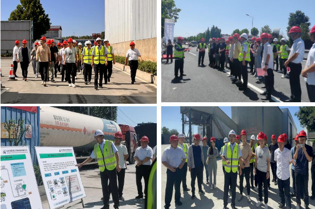 參加活動人員首先前往S102項目的山東大通材料拌和站進行參觀交流。新材料科技分公司詳細介紹了干法SBS的生產工藝及性能,現場查看干法SBS改性瀝青生產工藝,隨后至項目現場聽取項目講解并觀摩干法SBS攤鋪的施工情況。