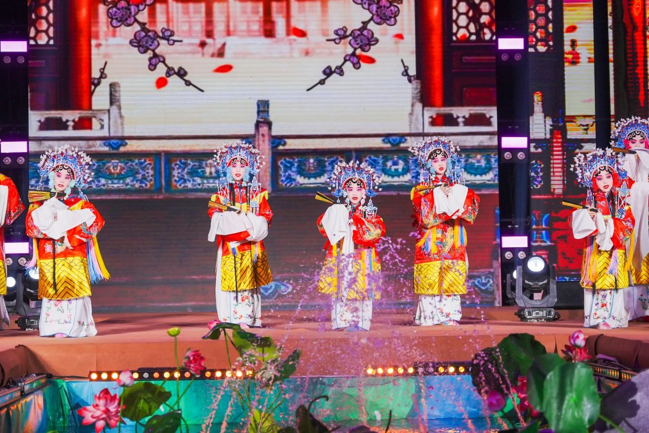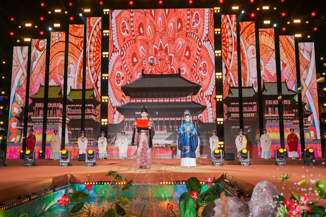音樂、舞蹈、雜技、燈光秀……街區(qū)上流光溢彩、燈火輝煌,舞臺上衣香袂影、霓裳起舞,市民游客共赴秋月古風(fēng)浪漫,共享中國文化之美。今年中秋拜月大典將中秋佳節(jié)所蘊(yùn)含的傳統(tǒng)習(xí)俗、鄉(xiāng)愁思念和家國情懷融為一體,以歌舞、樂器、戲曲曲藝非遺為主要載體,唯美、浪漫,創(chuàng)新打造具有未來感的全景式舞臺,在虛與實(shí)、古與今、遠(yuǎn)與近的巧妙轉(zhuǎn)換中實(shí)現(xiàn)沉浸式體驗(yàn)。在活動現(xiàn)場,已經(jīng)連續(xù)參加六屆拜月大典的市民王鵬飛告訴記者:“今年我把剛1歲的寶寶也帶來了,文化熏陶要趁早,以后還要年年來,這樣才能不忘初心嘛!”