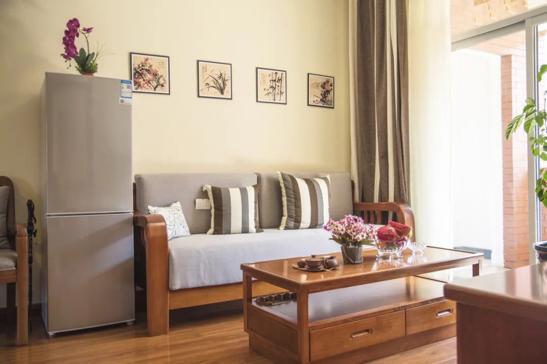候鳥旅居區(qū)按照星級(jí)酒店服務(wù)標(biāo)準(zhǔn),設(shè)有套房、標(biāo)準(zhǔn)間和單人間,房間內(nèi)設(shè)施設(shè)備均采用適老化設(shè)計(jì),支持短期入住,提供候鳥養(yǎng)老服務(wù)。