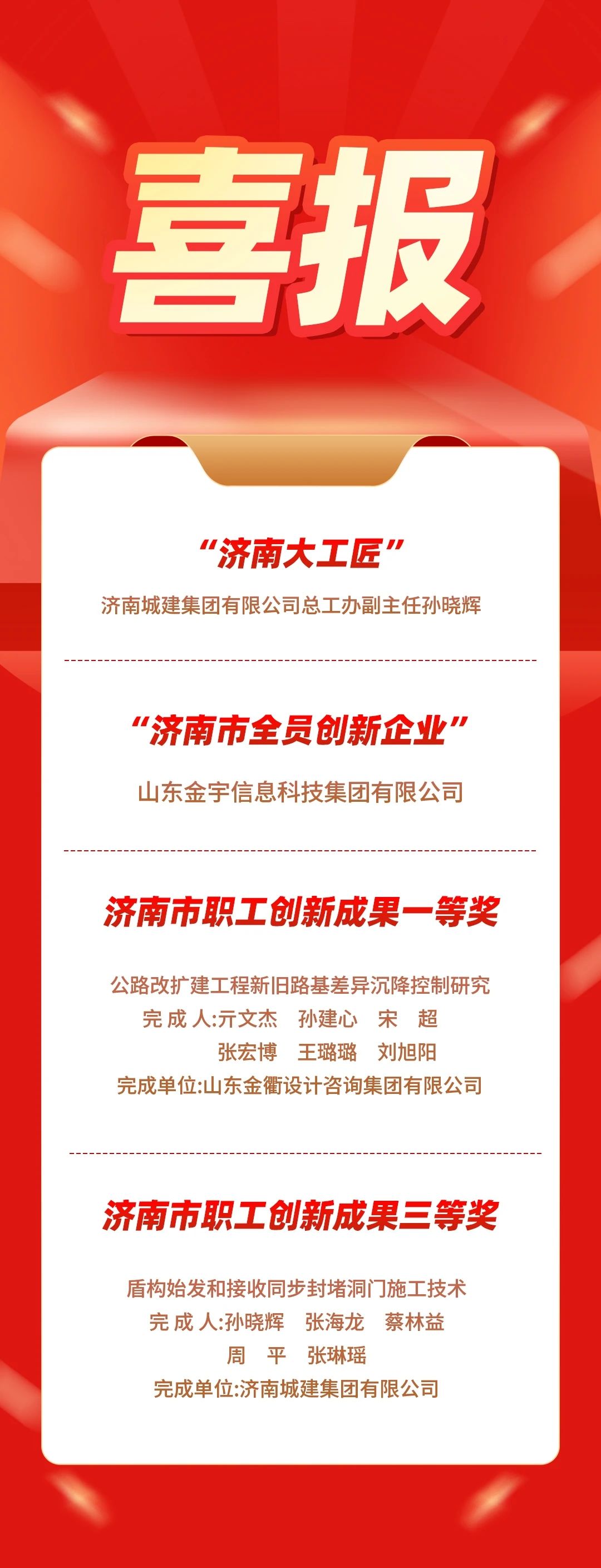 近日,濟南市總工會發(fā)布《關(guān)于公布2024年度 “濟南工匠”的通知》《關(guān)于公布2024年度泉城職工全員創(chuàng)新競賽結(jié)果的通知》,建設(shè)集團多個集體及個人獲表彰。