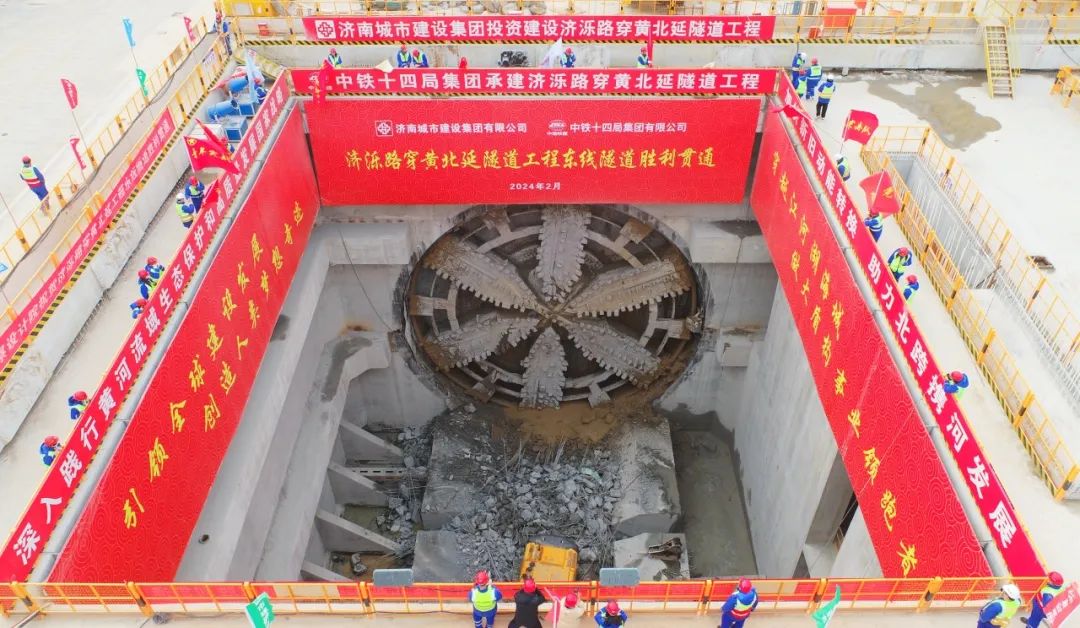 2月29日,隨著“泰山號(hào)”盾構(gòu)機(jī)刀盤(pán)破洞而出,順利抵達(dá)接收工作井,由濟(jì)南城市建設(shè)集團(tuán)投資建設(shè),中鐵十四局施工的濟(jì)南黃河濟(jì)濼路北延工程?hào)|線隧道順利貫通,這是繼西線隧道1月6日貫通后取得的又一重要進(jìn)展,標(biāo)志著國(guó)內(nèi)最大直徑公軌合建盾構(gòu)隧道安全順利穿越大型城市水庫(kù),為全線建成通車奠定了堅(jiān)實(shí)基礎(chǔ)。