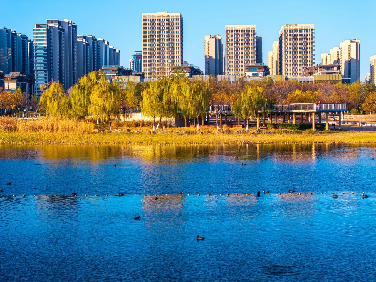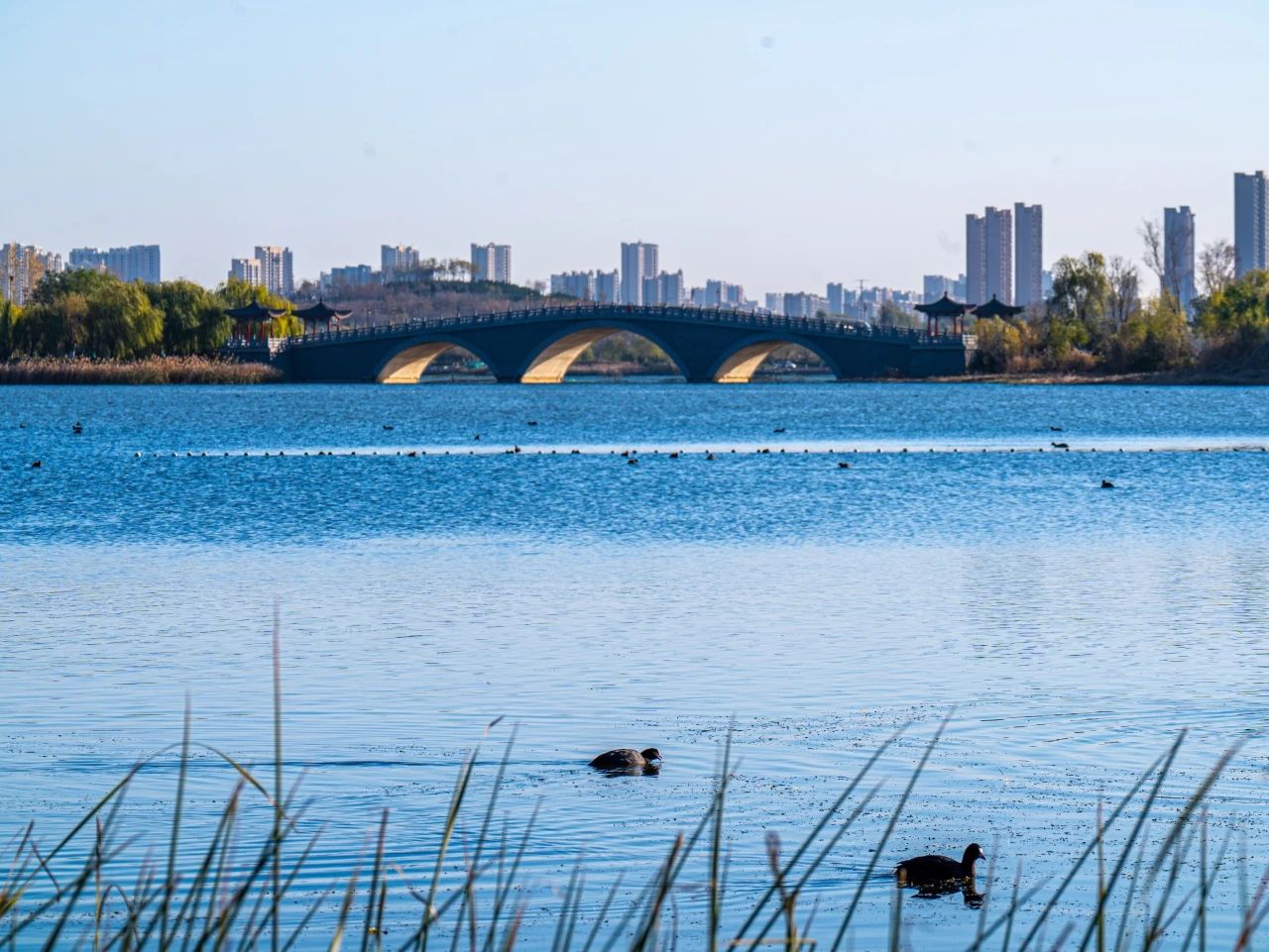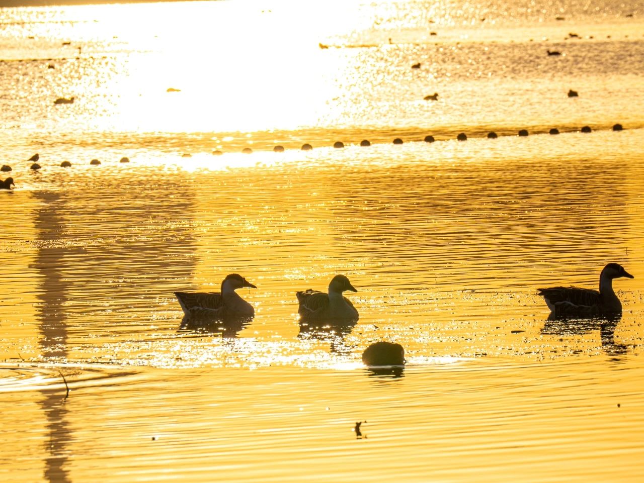 羽翼輕展映寒暉,群鳥嬉戲逐水歸。秋末冬初,上百只國(guó)家二級(jí)保護(hù)動(dòng)物白骨頂雞如約來到濟(jì)南華山景區(qū)棲息,赴冬日的約定。