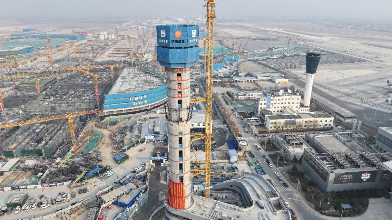 1月21日,濟南機場二期改擴建航站區工程塔臺及附樓項目主體結構封頂,塔臺核心筒結構全面封頂,提前達成春節前節點目標,實現年度開門紅。