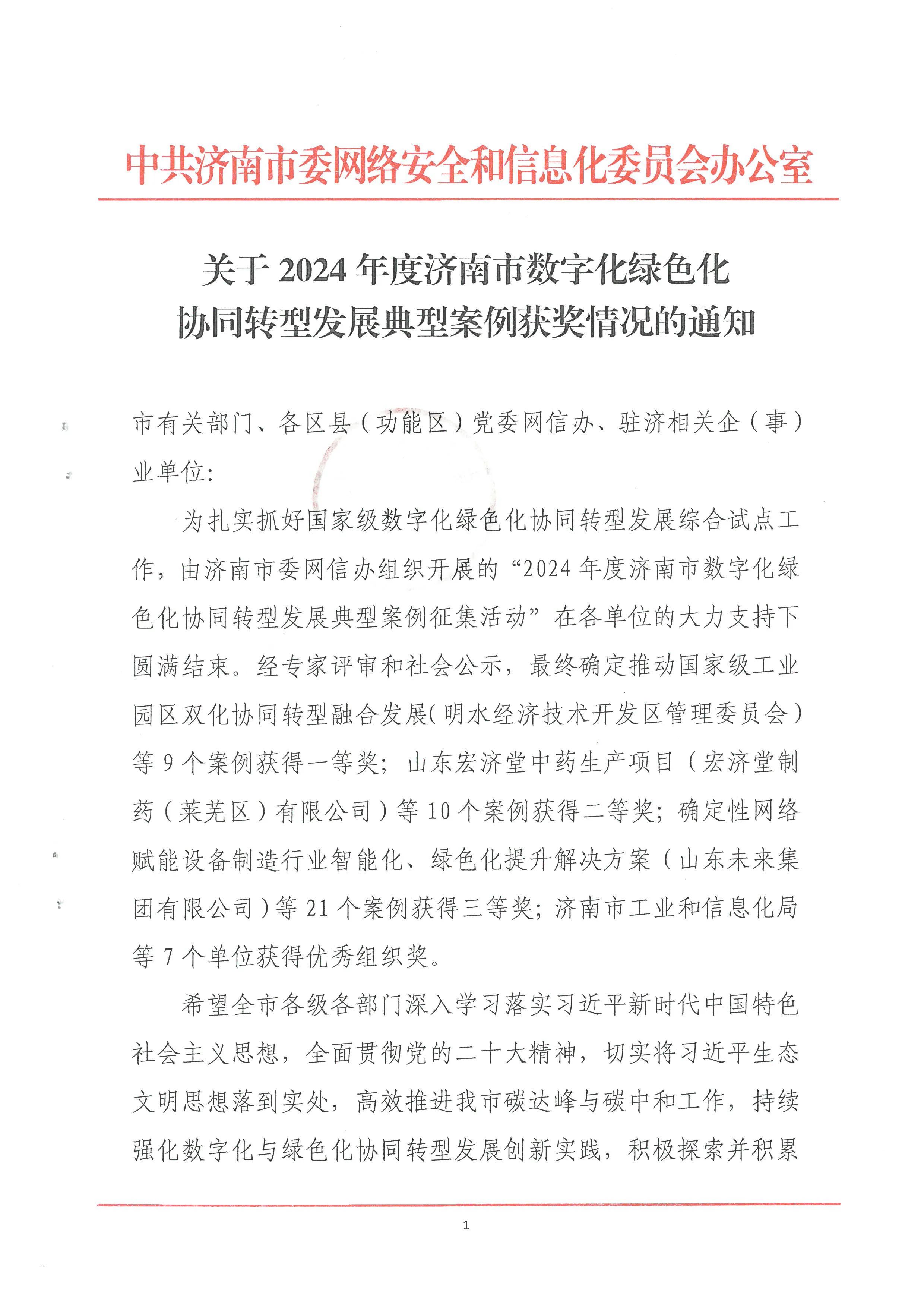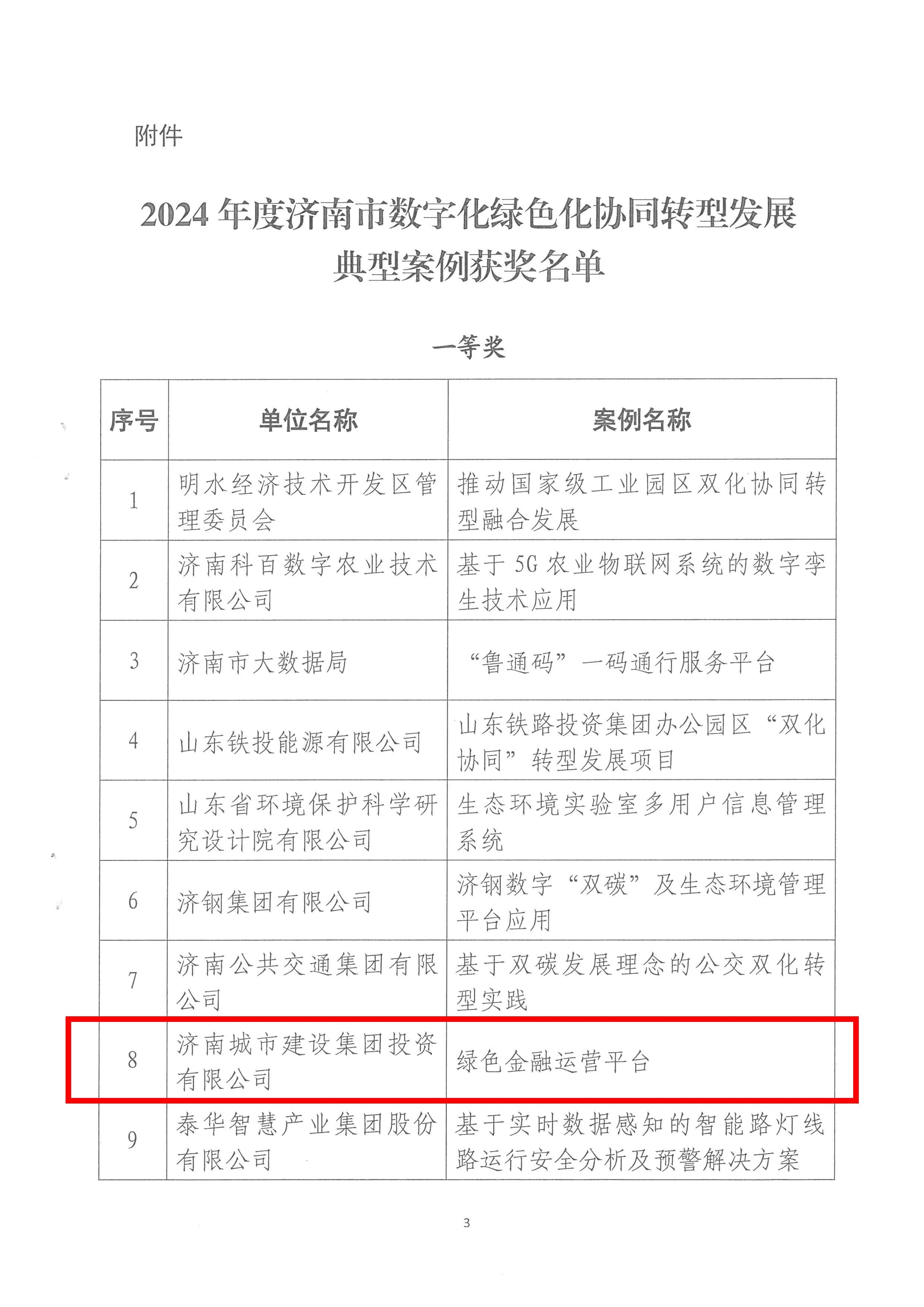 近日,濟南市委網(wǎng)信辦公布了《2024年度濟南市數(shù)字化綠色化協(xié)同轉(zhuǎn)型發(fā)展典型案例獲獎情況的通知》。經(jīng)過嚴格的考察、評審與公示,建設集團所屬濟南城市建設集團投資有限公司提交的“綠色金融協(xié)同賦能平臺”案例在眾多參評項目中脫穎而出,榮獲一等獎。